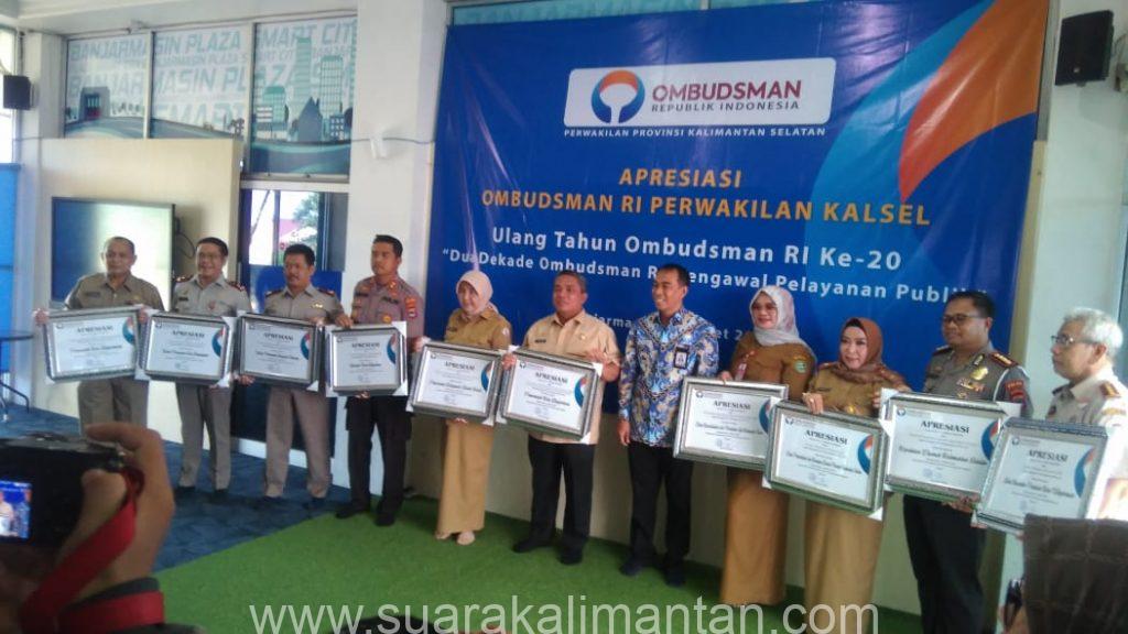 SUAKA – BANJARMASIN, SuaraKalimantan.com – Penghargaan ke-10 diberikan Ombudsman RI Provinsi Kalsel, kepada petinggi instansi penyelenggara pelayanan publik yang responsif dan inovatif selama 2019.