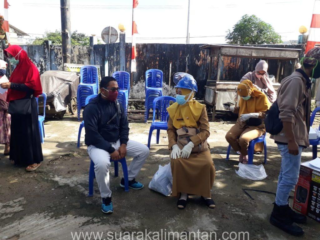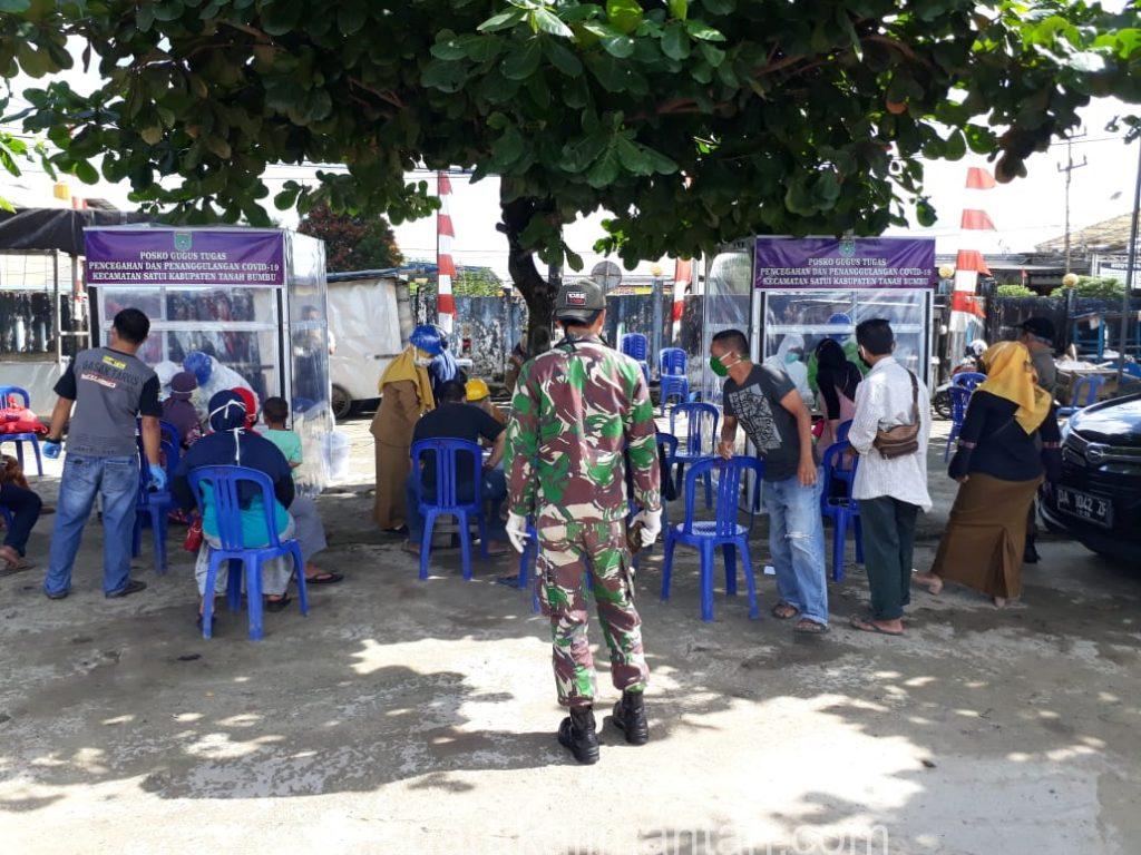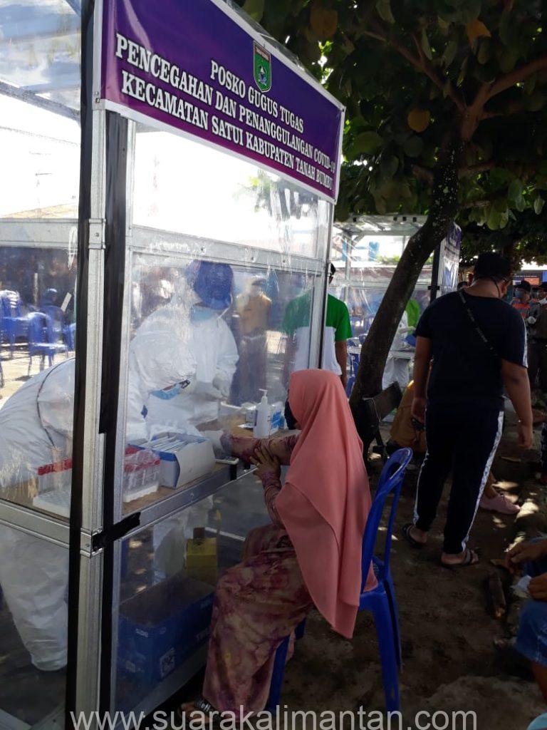 SUAKA – TANAH BUMBU. Dinas Kesehatan (Kadinkes) Kabupaten Tanah bumbu melalui Puskesmas Satui, bersama Posko gugus tugas pencegahan dan penanggulangan covid 19. Kecamatan Satui menggelar Rapid test untuk para pedagang Pasar “Sudan Raya” bertempat di terminal induk Sungai danau pada Selasa, (19/05/2020) Pagi.