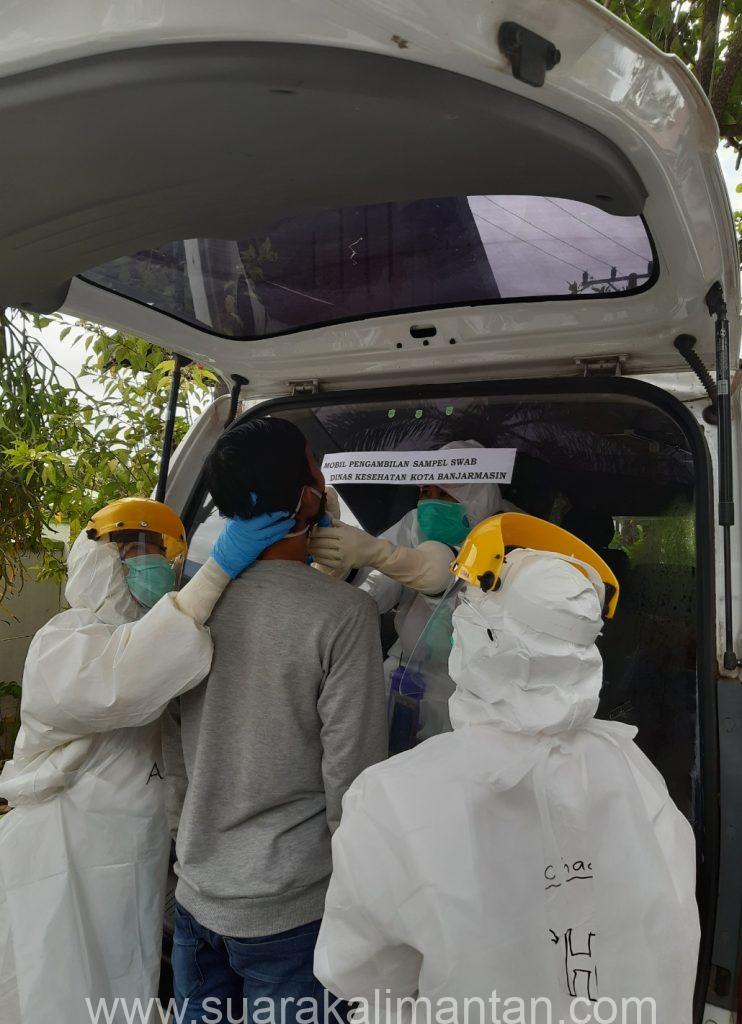 Swab massal ini di adakan di Halaman Kantor Dinas Kesehatan Kota Banjarmasin dan Laboratorium Kesehatan Kota Banjarmasin.