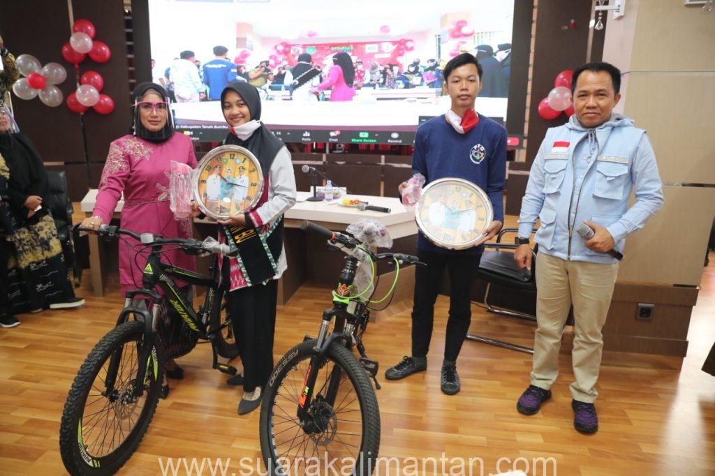 Dua remaja M Rizki dan M Fuja Fitri memperoleh hadiah masing-masing satu buah sepeda dari Bupati H. Sudian Noor karena keduanya sudah berhasil menghafalkan Al Qur’an Pada acara Peringatan Hari Anak Nasional tahun 2020.