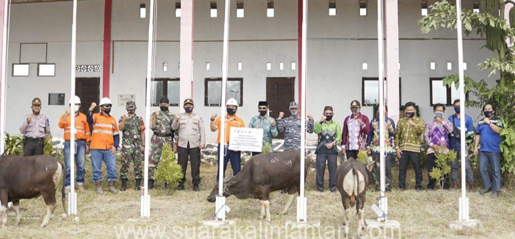 SuaraKalimantan.com – Batulicin. PT Arutmin Indonesia Tambang Satui dan Mitra Kerja (PAMA, STU, CLS, Darma Henwa dan KS) menyerahkan hewan Qurban Idul Adha 1441 H untuk masyarakat di Kecamatan Satui. Penyerahannya dilakukan secara langsung kepada Forum Pimpinan Kecamatan Satui di lapangan kantor Kecamatan Satui pada hari Kamis, (30/07/2020).