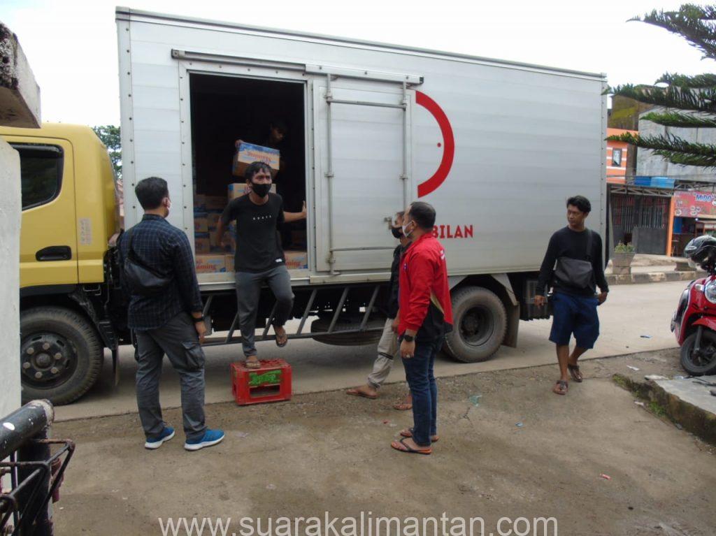 Terlihat sangat tidak canggung H. Alfi sapaan akrab wakil DPRD Tanbu angkat kerdus-kerdus air minenal, gula pasir serta minyak goreng dari atas truk box pengantar barang yang berlogo Enam Sembilan kedalam Posko Penanggulangan Banjir.