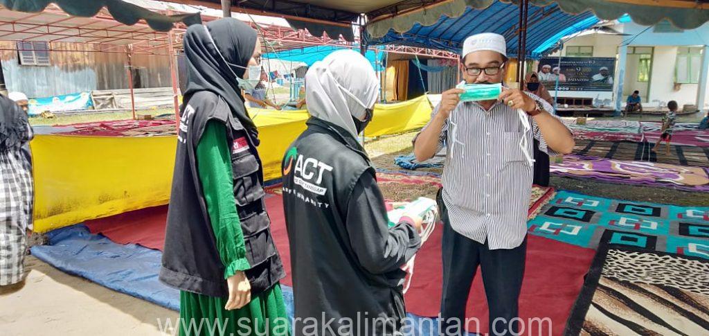 “Maskermu melindungi mu,masker ku melindungi mu” ucap Maruan koordinator lapangan ACT-MRI Tanah Bumbu