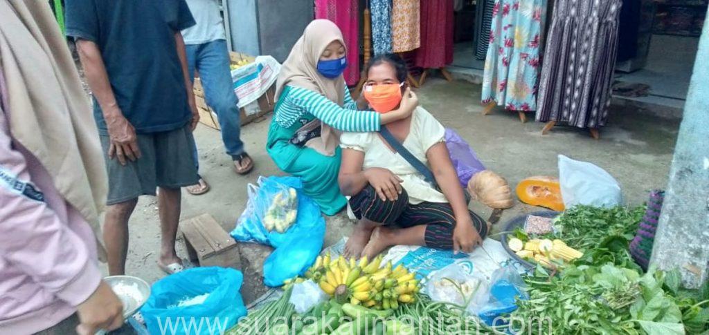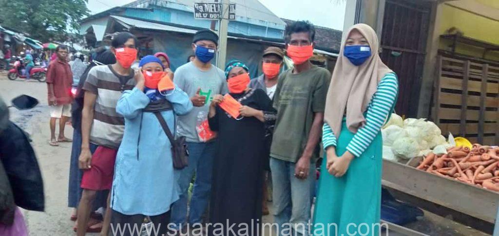 Kali ini sasaran penerima masker para pedagang dan pembeli sayuran di kawasan pasar pagi Sungai Danau, sebanyak kurang lebih 300 masker telah dibagikan.