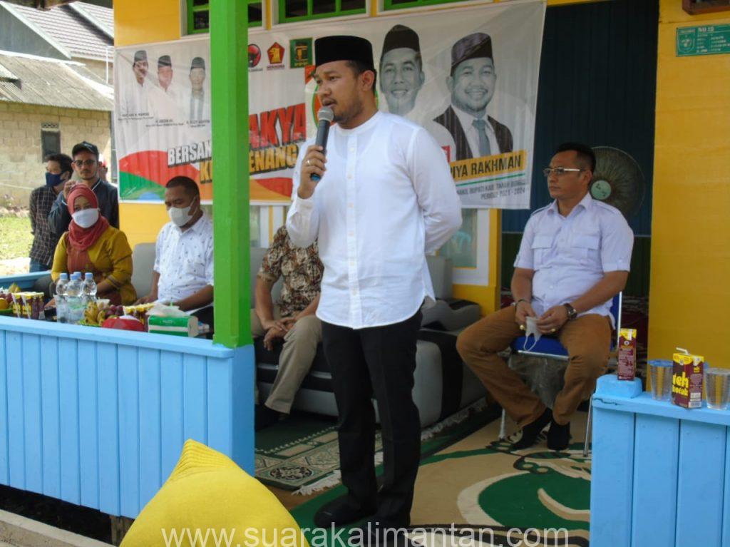 SUAKA – BATULICIN. Calon Wakil Bupati Tanah Bumbu M. Alpiya Rakhman, mengklarifikasi Issue Black Campaign (Kampanye Hitam) Pasangan Calon Bupati dan Wakil Bupati SHM-MAR saat berorasi di kawasan kecamatan Angsana kabupaten Tanah Bumbu provinsi Kalimantan Selatan Jum’at, (02/10/2020).