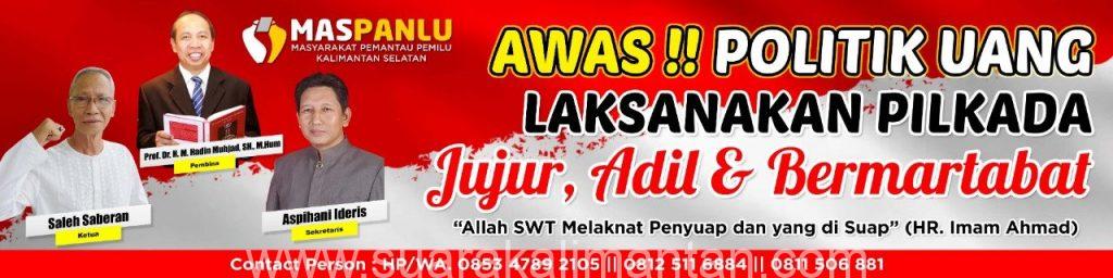 “Kita lihatlah nanti, apakah Pilkada di Kalsel ini dilakukan oleh para kontestan dengan jujur atau tidak?. Kita berharap Pilkada ini menghasilkan pemenang yang bekualitas dan tidak menjadikan uang sebagai raja,” ucap Saleh.