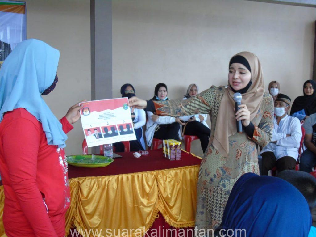 Dalam kesempatan tersebut istri calon wakil bupati M. Alpiya Rakhman memperkenalkan diri serta menyosialiasikan secara masif contoh surat suara