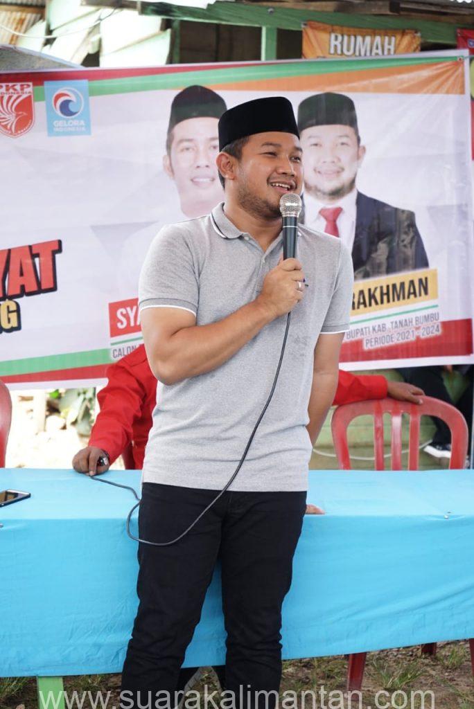 SUAKA – BATULICIN. Calon wakil bupati Tanah Bumbu nomor urut 01 M. Alpiya Rakhman, melaksanakan kampanye dialogis di Desa Gunung Raya dan Emil Baru adalah salah satu desa diwilayah Kecamatan Mantewe kabupaten Tanah Bumbu provinsi Kalimantan Selatan Senin, (26/10/2020).