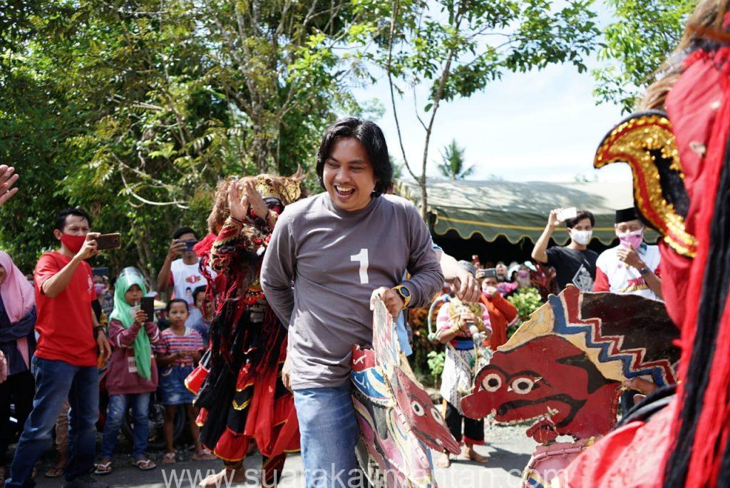 SUAKA – BATULICIN. Calon wakil bupati dan Ketua Pemenangan pasangan calon Bupati dan Wakil Bupati Syafruddin H Maming – M. Alpiya Rakhman (SHM-MAR) disambut meriah dengan Jaranan (kuda lumping) oleh warga RT03 RW01 Desa Sumber Wangi Kecamatan Karang Bintang kabupaten Tanah Bumbu Selasa, (03/11/2020)