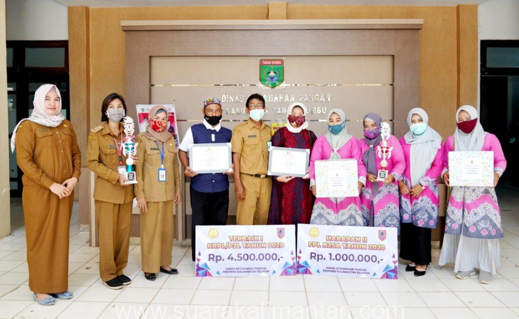 SUAKA – BATULICIN. Penyerahan Hadiah lomba Pekarangan Pangan Lestari (P2L) yang diadakan oleh Dinas Ketahanan Pangan (DKP) Provinsi Kalimantan Selatan. Hadiah diserahkan secara simbolis oleh Sekretaris DKP Tanbu, M Syarwani di Batulicin Senin (16/11/2020), kepada perwakilan KWT Sawi Desa Sinar Bulan.