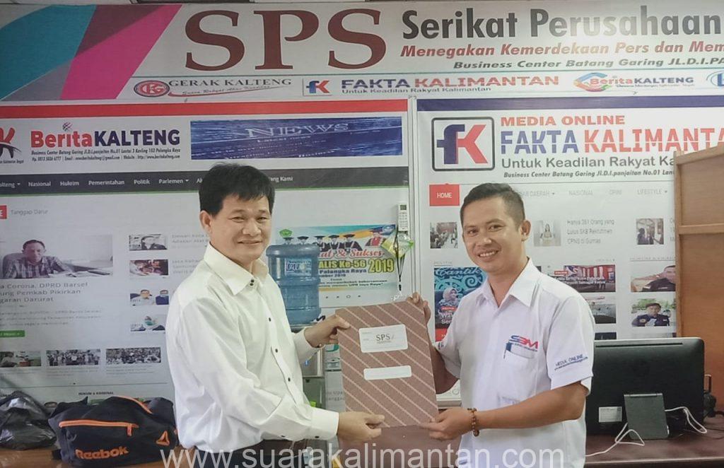 Dalam kesempatan tersebut pimpinan redaksi liputan SBM Daerobi di sambut langsung oleh Sekretaris SPS Cabang Kalteng Sogianto.