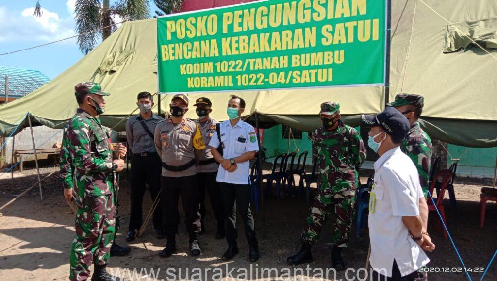 Danramil 1022-07/Angsana, Kapten Inf Aris PH, Danramil 1022-04/Satui, Lettu Inf. Kuat Didik Suryono, Pjs.Camat Satui, Taufik S.Sos, Kades Sungai Danau, Sya’bani Rasul,SE.MM, Warga yang terdampak musibah Kebakaran. (barlis)