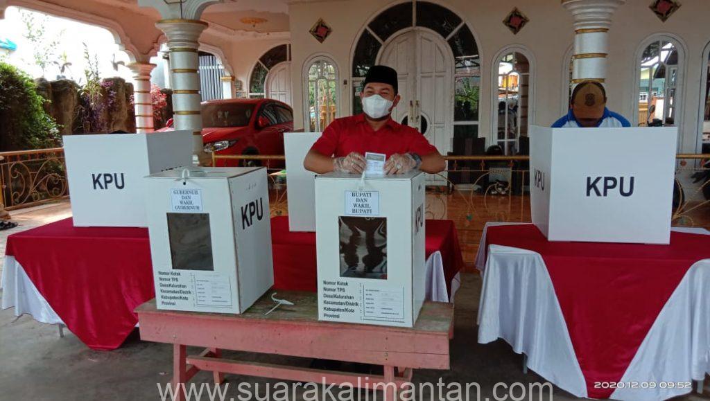 Didampingi sang istri M. Alpiya Rakhman calon wakil bupati mencoblos di TPS5 RT05 Desa Sungai Danau Kecamatan Satui pada pukul 10:00 Witta.