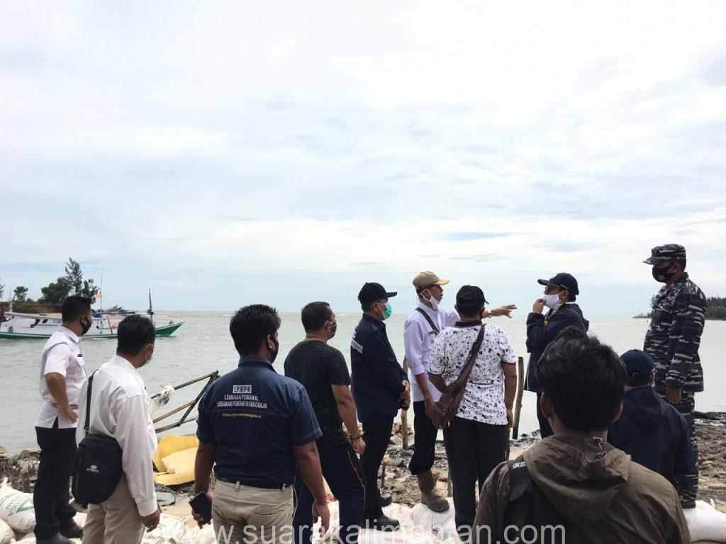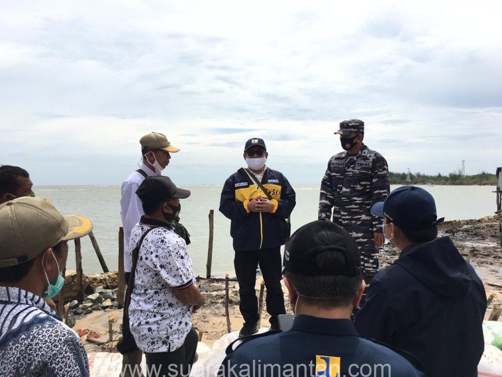 SUAKA – PELAIHARI. Satuan Kerja (Satker) Balai Wilayah Sungai (BWS) Kalimantan II diwakili Toni Kushartono, ST didampingi Camat Kintap, Kabid Dinas PUPR Tanah Laut tinjau secara langsung abrasi pantai di Desa Muara Kintap yang sering disebut warga sekitar (seberang Bugis red) Kecamatan Kintap Kabupaten Tanah Laut, Kalimantan Selatan Rabu, (23/12/2020).