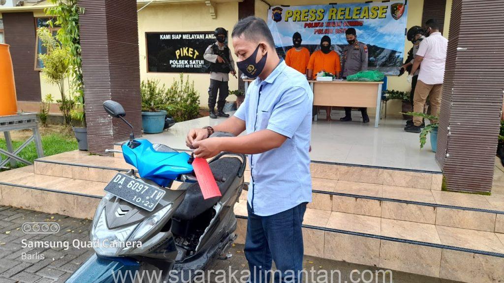 Anggota Reskrim Poksek Satui, setalah menerima laporan langsung bergerak dan kurang lebih 4 hari berhasil meringkus terduga pelaku dijalan Mutiara RT23 Desa Sungai Danau.