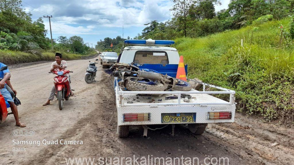 BATULICIN, suarakalimantan.com – Sebuah truk tronton terlibat kecelakaan dengan motor dijalan Sumpol atau tepatnya di jalan hak pengusahaan hutan (HPH) eks PT. Sumpol Timber kilometer 9 simpang empat jalan hauling HB. Kecamatan Satui Kabupaten Tanah Bumbu pada Minggu, (10/1/2021) sekira pukul 10:00 wita.
