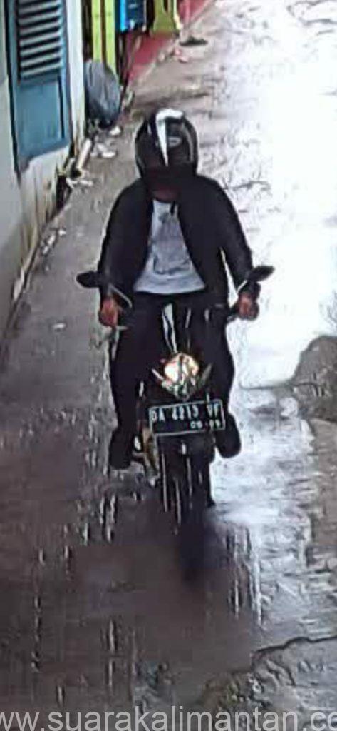 Dari pantauan CCTV, pelaku yang mengenakan helm, jaket, celana hitam, baju kaos putih, mengendarai Sepeda Motor Satria F Nopol DA4213VF sempat terpantau kamera pengawas saat melakukan aksi bejatnya.