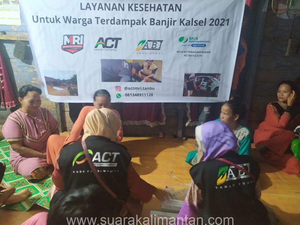 ACT/MRI Tanah Bumbu selain membawa bantuan logistik juga bawa tim medis dan melakukan kegiatan trauma healing, memberikan layanan kesehatan gratis untuk korban pasca banjir Kalsel yang masih menempati tenda pengungsian.
