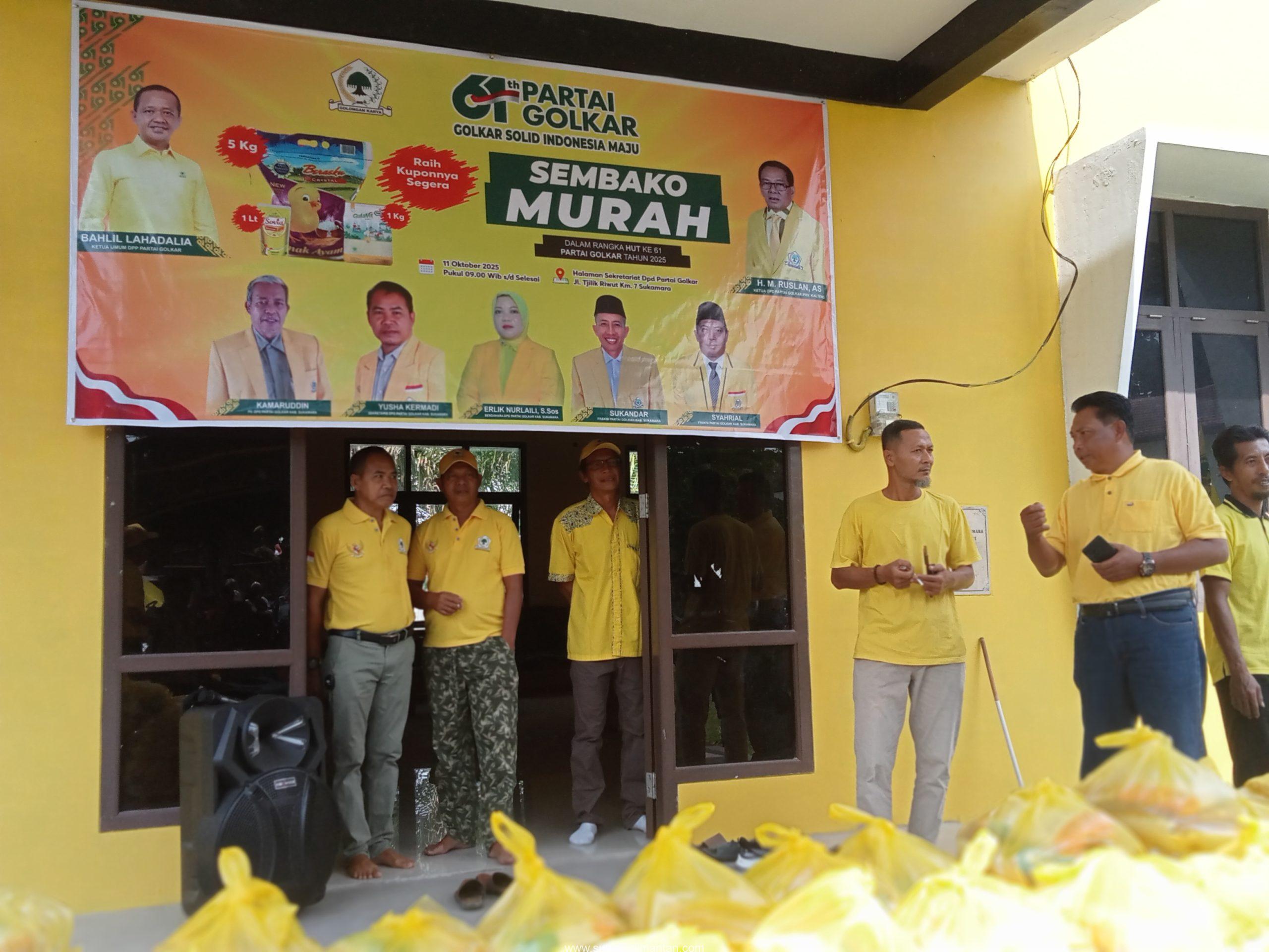 Kegiatan ini berlangsung serentak di seluruh provinsi, kabupaten, dan kota se-Indonesia, sebagai bentuk nyata kepedulian Partai Golkar terhadap kondisi ekonomi masyarakat yang tengah menghadapi tekanan.