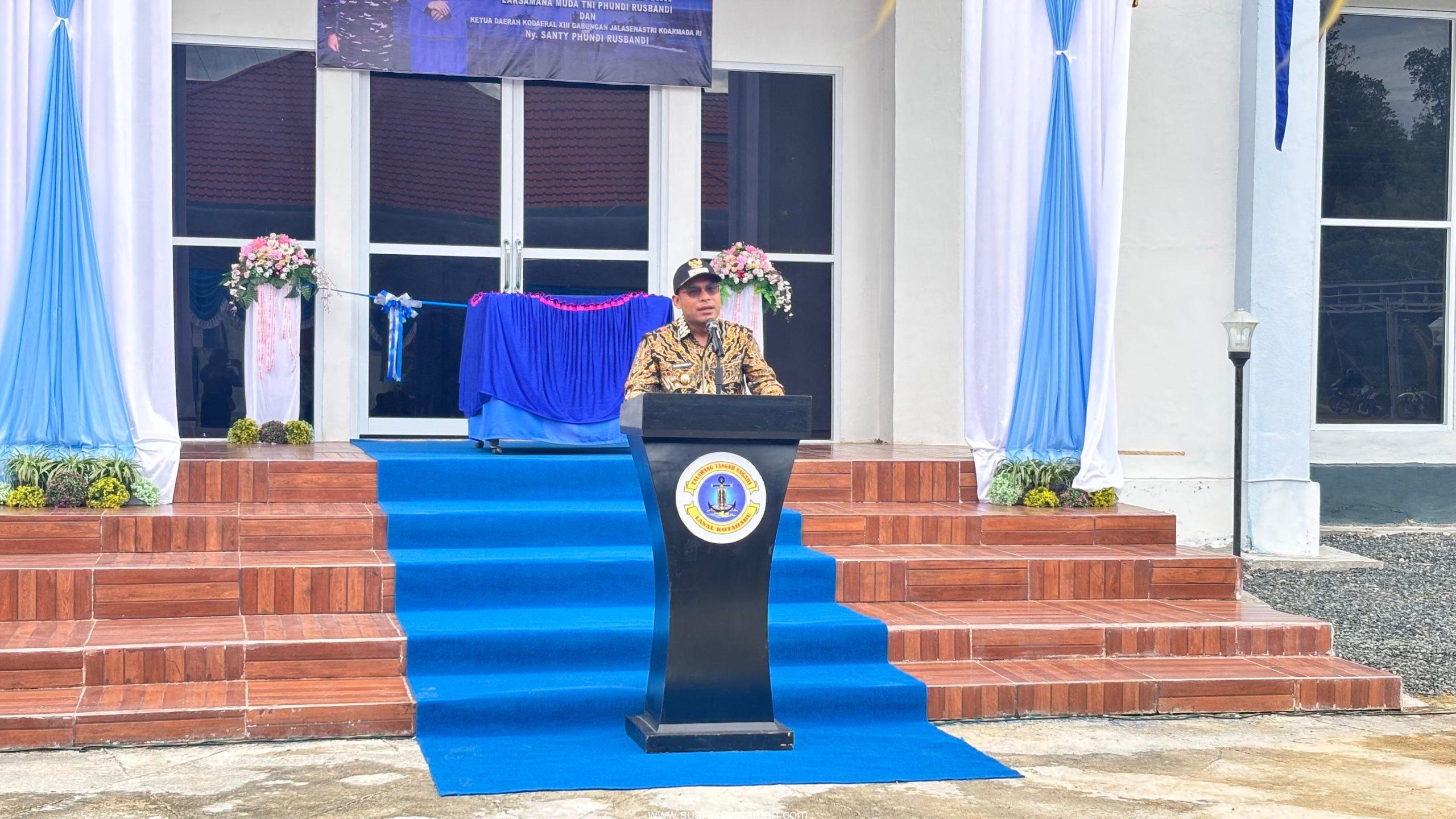 SUAKA – KOTABARU. Pemerintah Kabupaten Kotabaru melalui Wakil Bupati Syairi Mukhlis, S.Sos menghadiri acara peresmian Gedung Olahraga (GOR) Lanal Kotabaru yang diresmikan langsung oleh Komandan Komando Daerah Real XIII (Kodarreal XIII) Laksamana Muda TNI Phundi Rusbandi bersama Ketua Daerah Kodarreal XIII Gabungan Jalasenastri Kormada RI, Ny. Shanty Phundi Rusbandi, Jumat (24/10/2025).