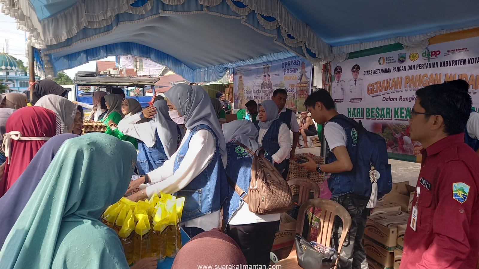 SUAKA – KOTABARU. Pemerintah daerah melalui Dinas Koprindag Kotabaru bersama Dinas Ketahanan Pangan dan Pertanian, TPID bid. Perekomonian Setda serta Bulog Kotabaru menggelar Operasi Pasar Murah dan gerakan Pangan Murah dalam rangka Menjelang menghadapi Natal 2025 dan Tahun baru 2026 berlangsung di halaman terminal higa gunung kelurahan Kotabaru Hulu, Rabu (3/12/2025).