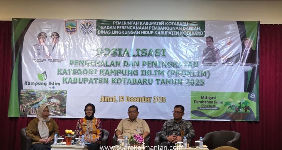 SUAKA – KOTABARU. Jumat (12/12/2025) Pemerintah Kabupaten Kotabaru melalui Badan Perencanaan Pembangunan Daerah (Baperinda) dan Dinas Lingkungan Hidup (DLH) menggelar Sosialisasi Pengenalan dan Peningkatan Kategori Kampung Iklim (Proklim) Tahun 2025 di Ballroom Hotel Grand Surya. Kegiatan yang dihadiri ratusan peserta – antara lain Sekda Kotabaru, asisten setda, perwakilan Baperinda, Kepala DLH, kepala desa, sekdes, narasumber, dan staf terkait – bertujuan memperkuat pemahaman desa dalam menghadapi tantangan perubahan iklim yang semakin nyata.