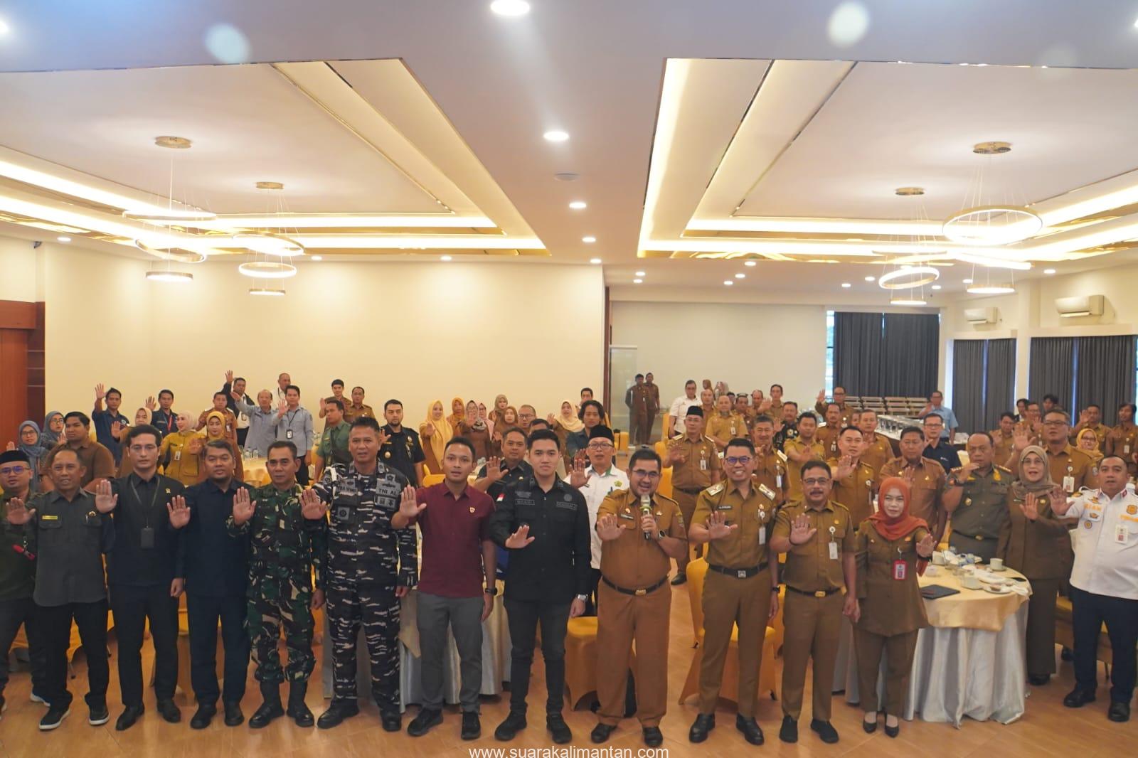 SUAKA – KOTABARU. Pemkab Kotabaru menggelar sosialisasi Survei Penilaian Integritas (SPI) 2025, diskusi panel, dan penyampaian hasil survei di Ballroom Hotel Grand Surya Kotabaru, Selasa (23/12/2025), dalam rangka peringatan Hari Antikorupsi Sedunia (Hakordia). Acara dibuka oleh Asisten I Bidang Pemerintahan Minggu Basuki (wakil Bupati) dan dihadiri Forkopimda, BPK Kalsel, SKPD, serta BUMD.