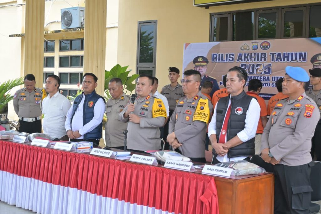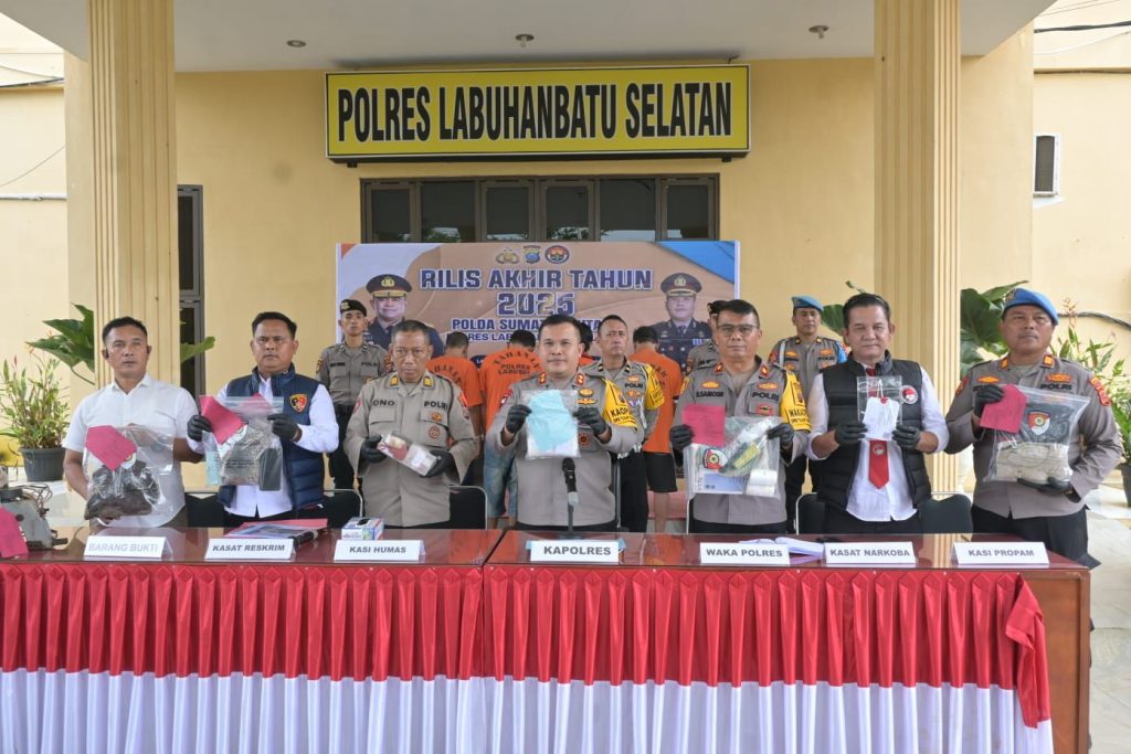 Labuhanbatu Selatan— SUARA KALIMANTAN Polres Labuhanbatu Selatan menggelar Konferensi Pers Akhir Tahun 2025 pada Selasa,30 Desember 2025,di halaman Mapolres Labuhanbatu Selatan.