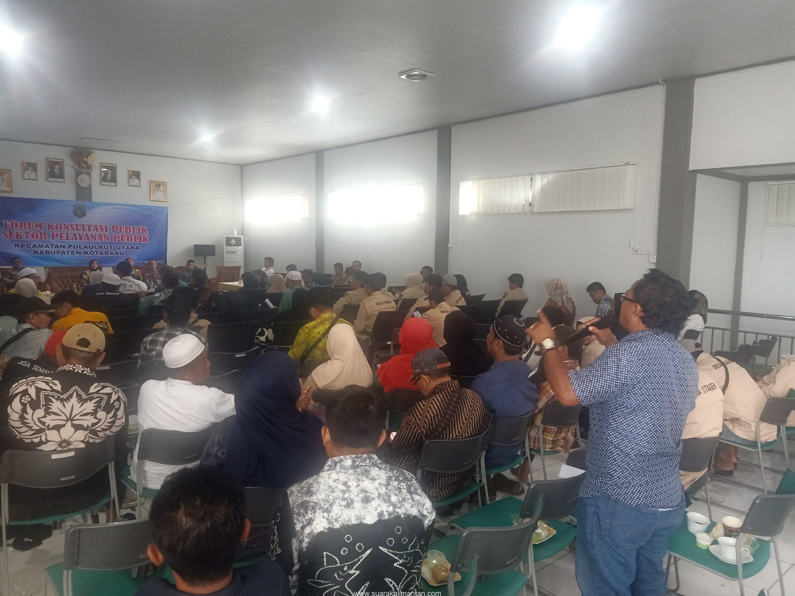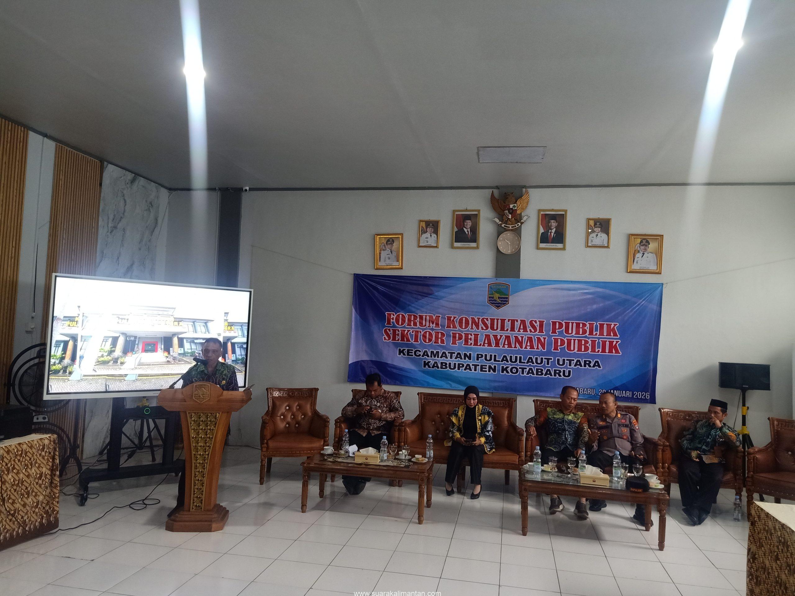 SUAKA – KOTABARU. Kecamatan Pulaulaut Utara, Kabupaten Kotabaru, menyelenggarakan Forum Konsultasi Publik Sektor Pelayanan Publik pada Kamis (29/1/2026) di Aula kecamatan.Kegiatan dihadiri oleh Asisten I Bidang Pemerintahan dan Kesejahteraan Rakyat Kabupaten Kotabaru, Minggu Basuki, yang mewakili Sekda. Ia mengapresiasi dan mendukung langkah kecamatan tersebut.