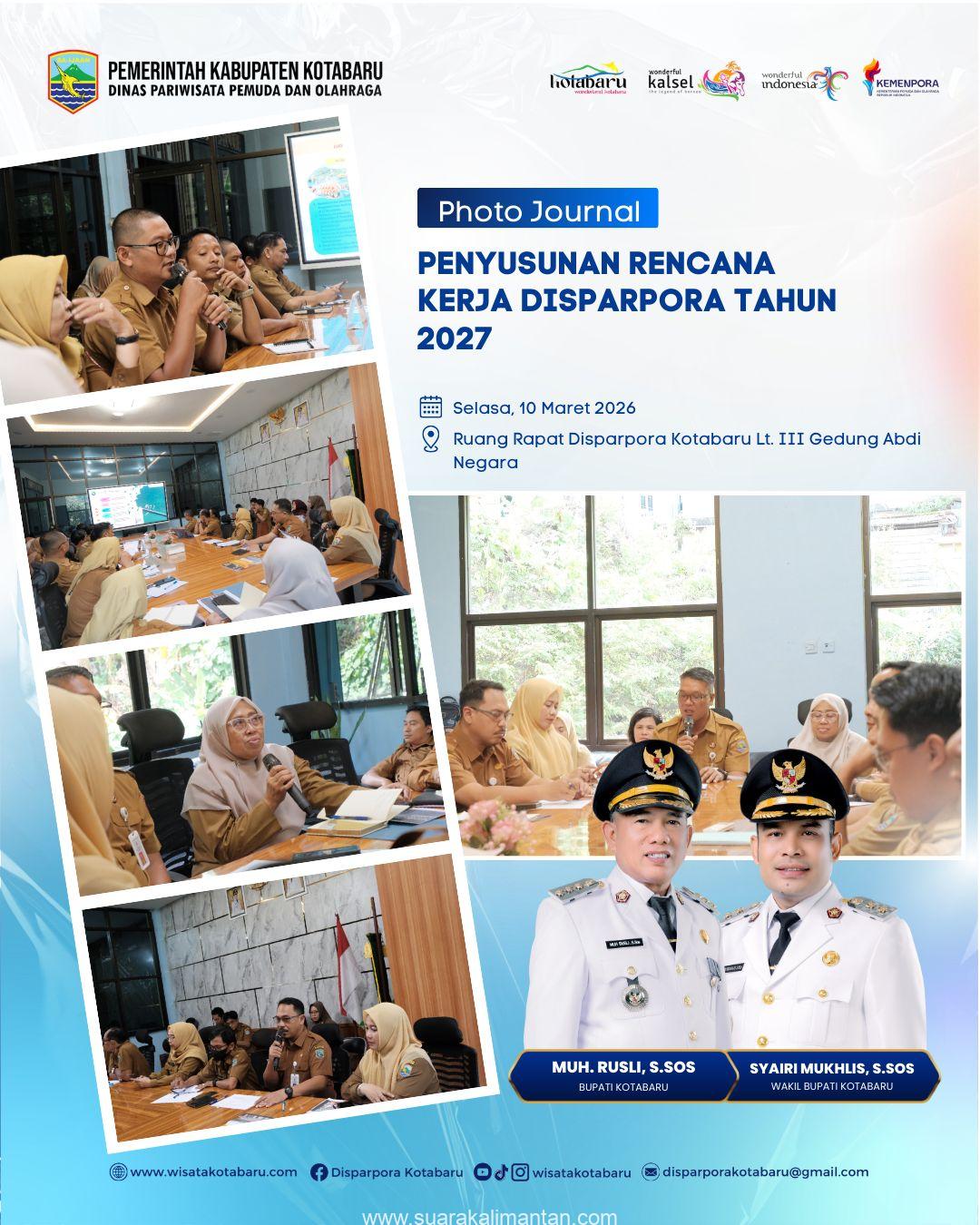 SUAKA – KOTABARU. Dinas Pariwisata Pemuda dan Olahraga (Disparpora) Kabupaten Kotabaru telah melaksanakan kegiatan penyusunan Rencana Kerja (Renja) untuk tahun 2027. Kegiatan tersebut berlangsung pada hari Selasa, 10 Maret 2026, di Ruang Rapat Disparpora yang terletak di lantai tiga Gedung Abdi Negara.