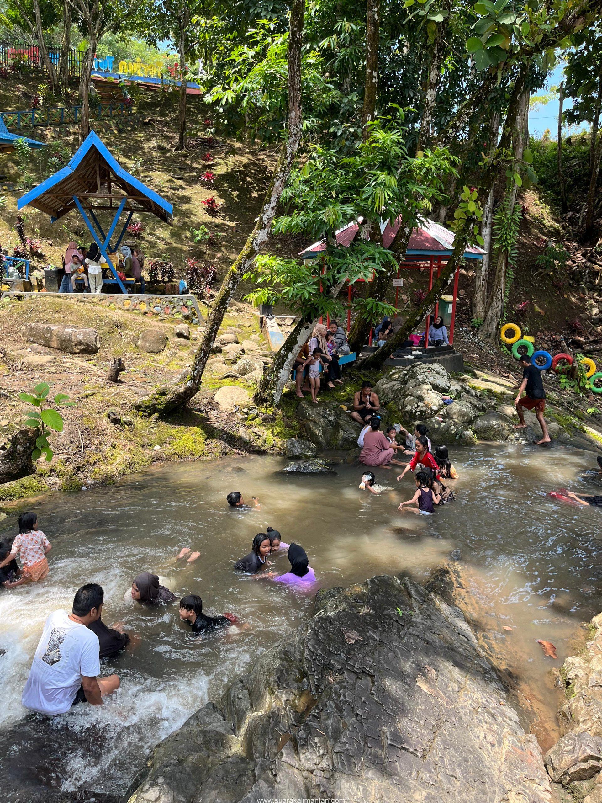 Area wisata yang cukup luas dikelilingi oleh sungai yang mengalir jernih dan pohon-pohon besar yang membuat suasana semakin asri dan segar. Banyak keluarga dan kelompok teman yang memilih menghabiskan waktu liburan di sini, menikmati kesegaran air terjun dan udara segar hutan sekitar. (red)