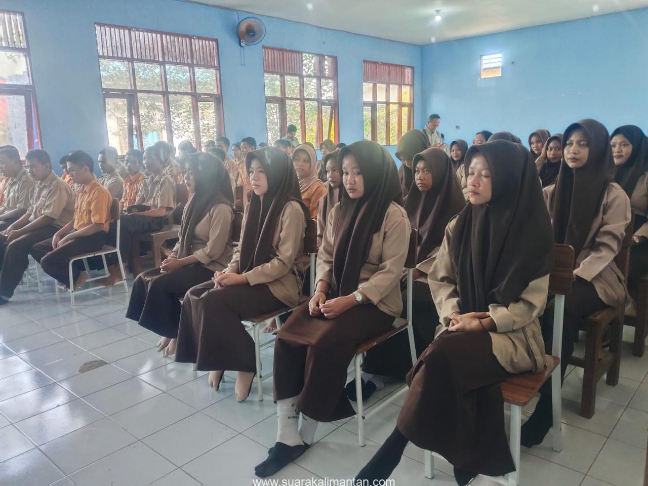 Tidak hanya soal tulis-menulis, Bripka Zulkifli dari Polsek Sungai Durian turut memberikan penyuluhan tentang bahaya narkoba guna membentengi karakter siswa.
