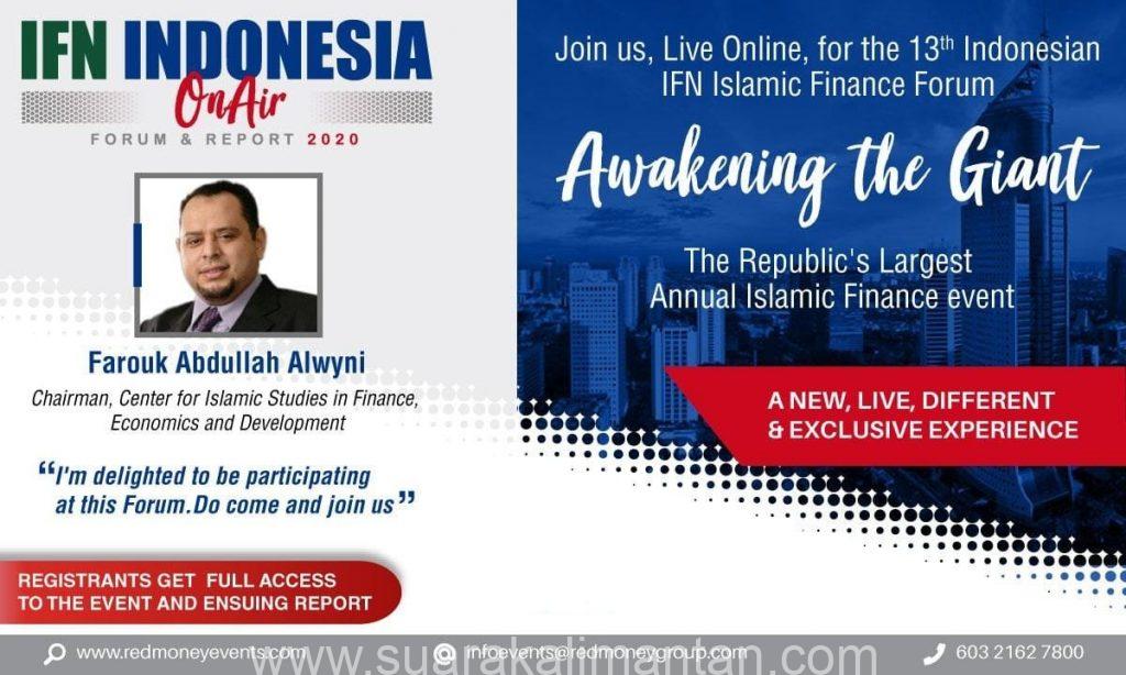 Suarakalimantan.com — Jakarta — Farouk Abdullah Alwyni selaku Chairman, Center for Islamic Studies in Finance, Economics, and Development (CISFED) menjadi salah satu panelis di diskusi panel Internasional Islamic Finance News (IFN) yang diselenggarakan secara online pada tanggal 22 September 2020. Diskusi panel ini bertema the Funds, Infrastructure, Islamic Capital Markets and Responsible Finance Initiatives in Indonesia. Adapun poin-poin yang disampaikan oleh FAA di panel tersebut adalah sebagai berikut: